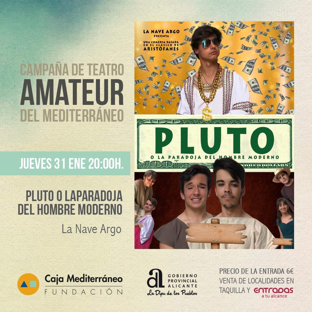 El próximo jueves 31 de enero a las 20:00h en el Aula de Cultura de la CAM el Grupo de Teatro La Nave Argo estrena Pluto o la paradoja del hombre moderno. Ya están a la venta las entradas a…